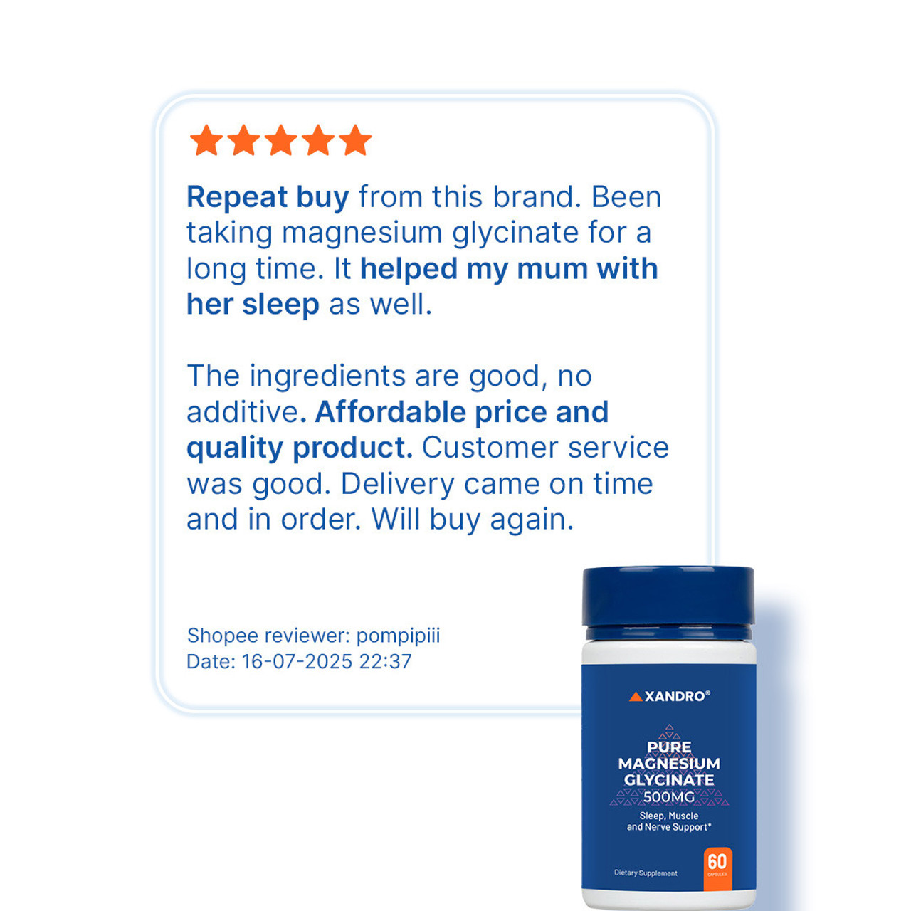 - Xandro Lab uses Magnesium Glycinate form of Magnesium.