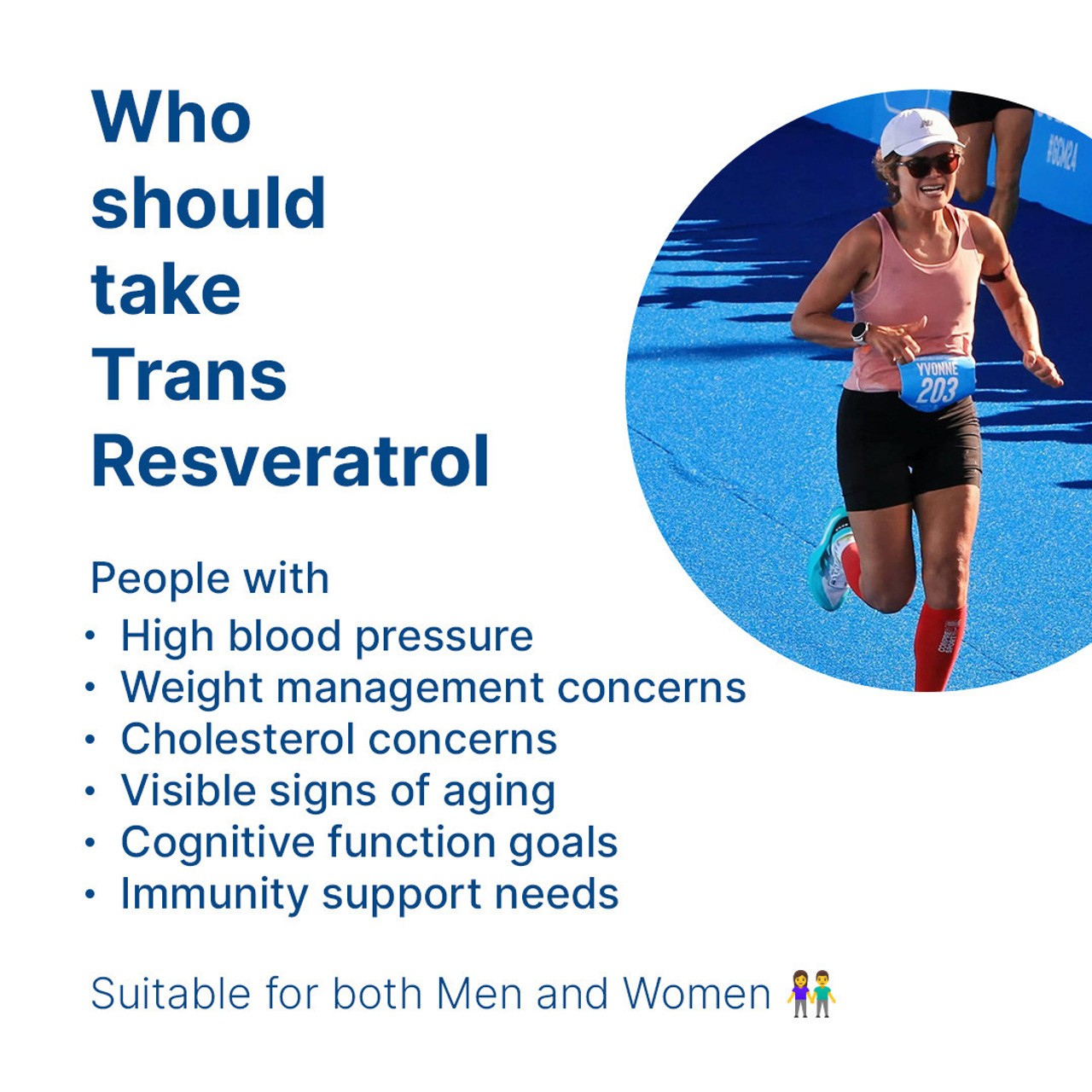 1) Trans-Resveratrol was found to significantly lower inflammation and triglyceride levels and increase antioxidant activity¹.