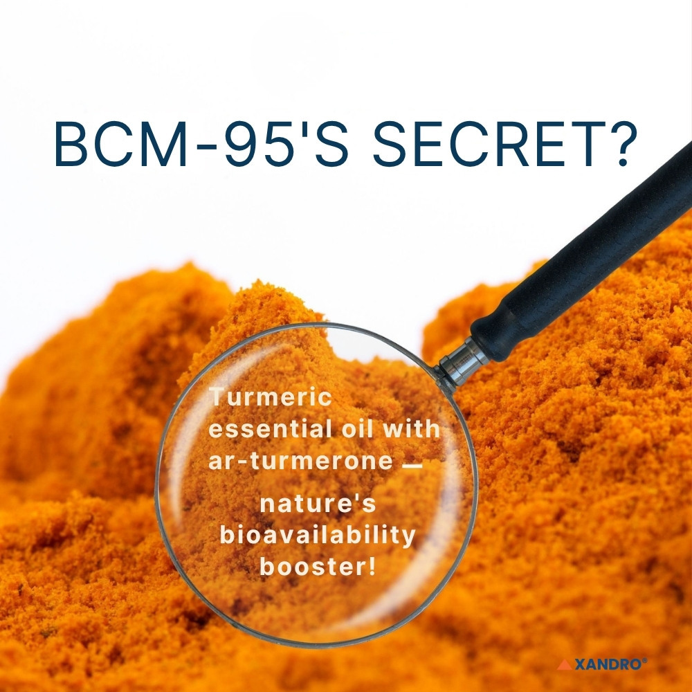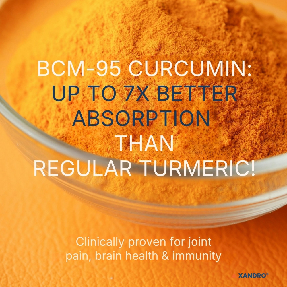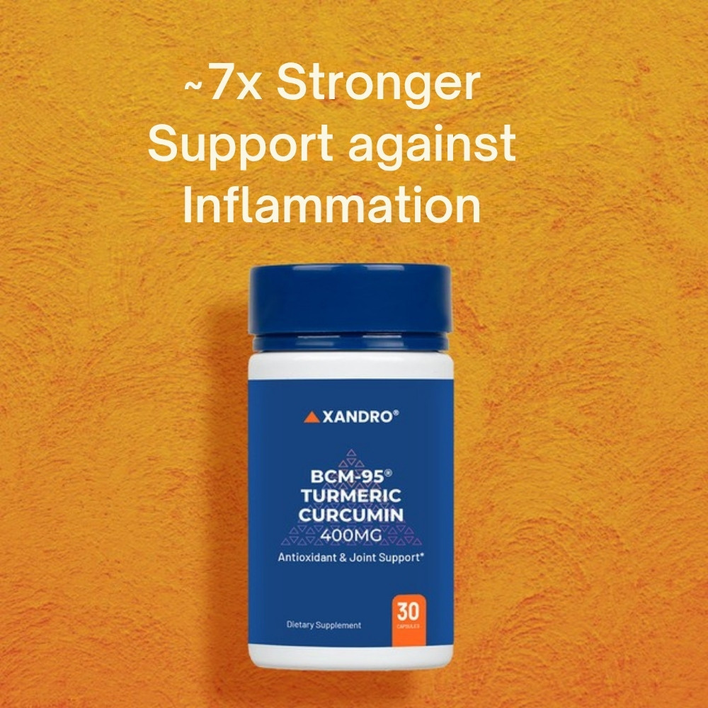 XANDRO's BCM-95® Turmeric Curcumin contains 400mg BCM-95® per serving, is GMP-certified, third-party lab tested, and contains no piperine or synthetic additives.