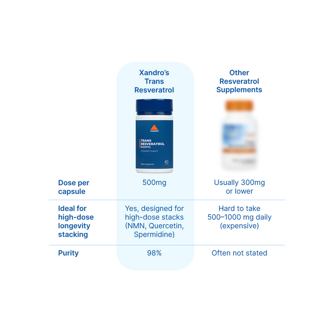 1) Trans-Resveratrol was found to significantly lower inflammation and triglyceride levels and increase antioxidant activity¹.